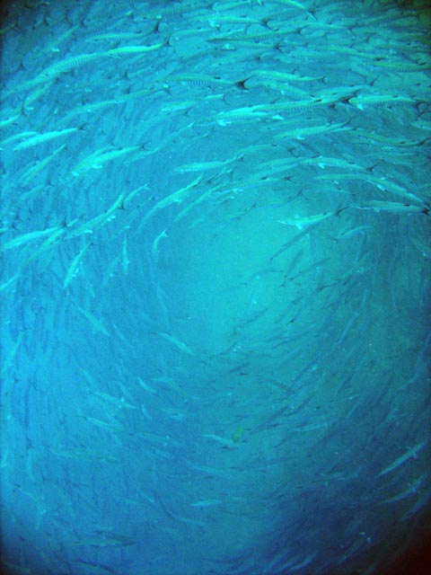 Barracudas. Diving around Togian islands, Una Una, Apollo dive site. Sulawesi, Indonesia.
